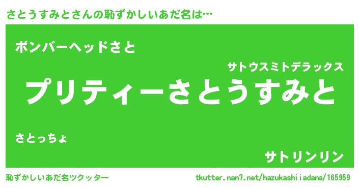 | 男性向けラノベタイトル風あだ名 | 『うちのさとうすみとが世界を掌握している!』 |