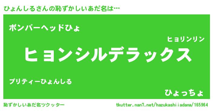 | 意味不明あだ名 | 『自称ひょんしる』『ペロリンひょんしる』 |
