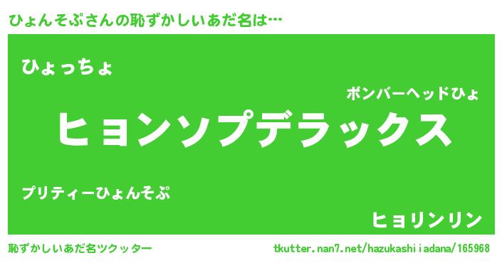 | ヘコむあだ名 | 『なまこ酢』『ひょ太郎』『ひょもー』 |