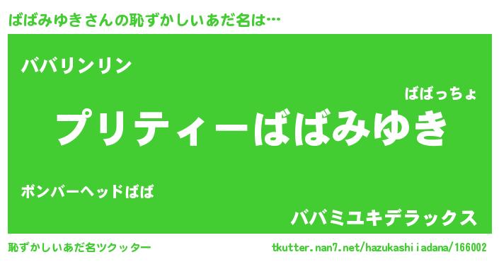 | 意味不明あだ名 | 『ペロリンばばみゆき』『自称ばばみゆき』 |