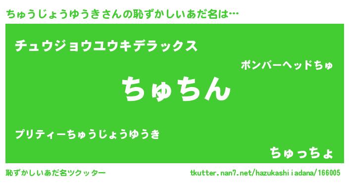 | 意味不明あだ名 | 『永久保存ちゅうじょうゆうき』 |