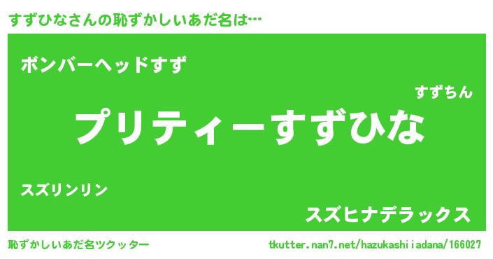 | ヘコむあだ名 | 『すずにー』『すずひな(爆)』 |