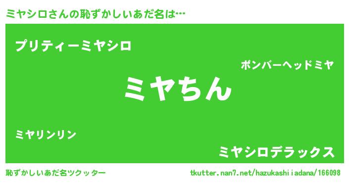 | ヘコむあだ名 | 『ミヤシロ(爆)』『ミヤもー』 |