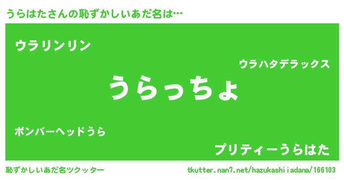 | 意味不明あだ名 | 『うらはたフォーエバー』『自称うらはた』 |