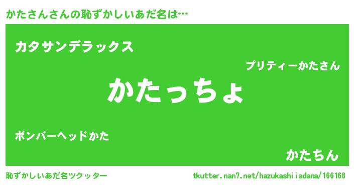 | ヘコむあだ名 | 『酢こんぶ』『かたさん(苦笑)』 |