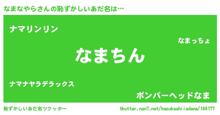 | ヘコむあだ名 | 『なまなやら(笑)』『なま太郎』 |