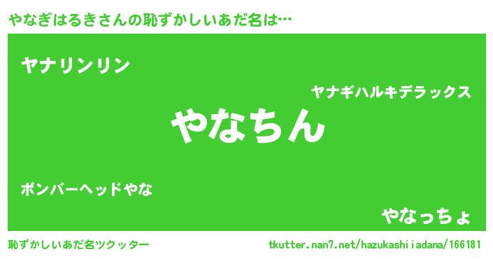 | ヘコむあだ名 | 『やなぎはるき(震え声)』『やなっぺ』 |