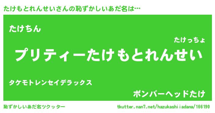 | 胡散臭い通販商品みたいなあだ名 | 『必ず成功するブレスレット…その名も「たけもとれんせい」』 |