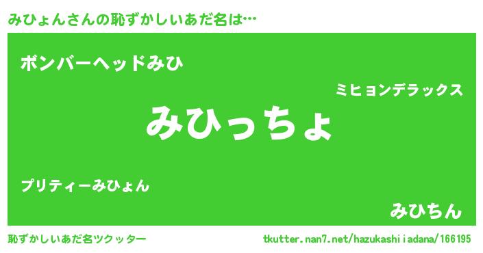| 欧米人風あだ名 | 『みひょんクリステル』 |