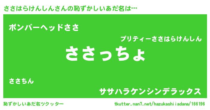 | 欧米人風あだ名 | 『トリンドルささはらけんしん』 |