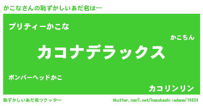 | 男性向けラノベタイトル風あだ名 | 『魔弾の王とかこな』『かこなの憂鬱』 |