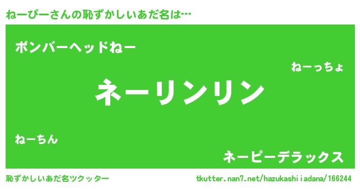 | ヒーロー風カッコイイあだ名 | 『銀牙騎士ネー』『正義の使者ねーぴー』 |