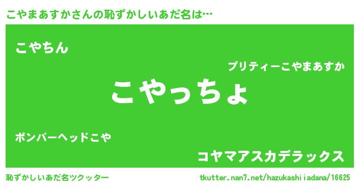 | 肩書あだ名 | 『こやまあすか大将』『こやまあすか校長』 |