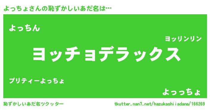 | 意味不明あだ名 | 『自称よっちょ』『永久保存よっちょ』 |
