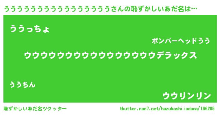 | ヒーロー風カッコイイあだ名 | 『最強戦士ウウウウウウウウウウウウウウウウ』 |