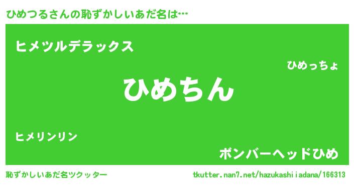 | ヒーロー風カッコイイあだ名 | 『ネオヒメツル』『サイバー戦士ヒメツル』 |