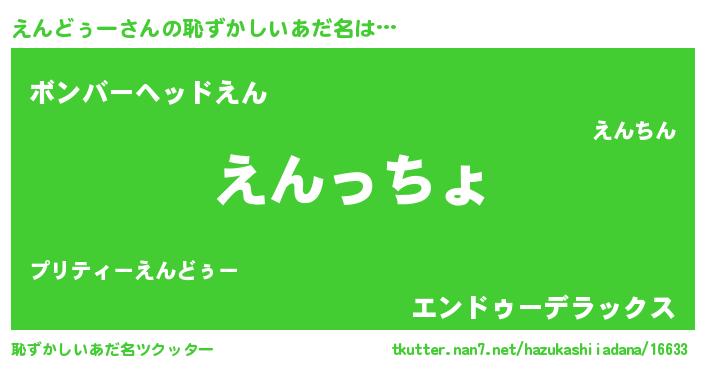 | 意味不明あだ名 | 『えんどぅーフォーエバー』 |