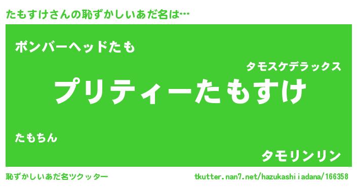 | ヒーロー風カッコイイあだ名 | 『スーパータモスケ』『幻影騎士タモ』 |