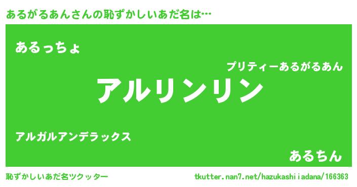 | 可愛いあだ名 | 『あっるぃー』『あるちー』 |