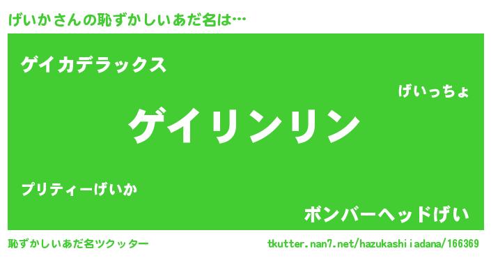| 意味不明あだ名 | 『とにかく怪しいげいか』『自称げいか』 |