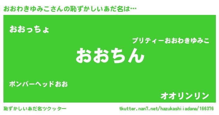 | 可愛いあだ名 | 『おーみん』『おおわきゆみこママ』 |