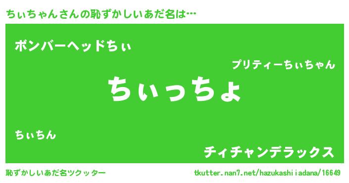 | 意味不明あだ名 | 『ちぃちゃんフォーエバー』 |