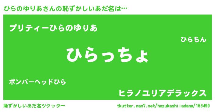 | 肩書あだ名 | 『ひらのゆりあ国家主席』 |