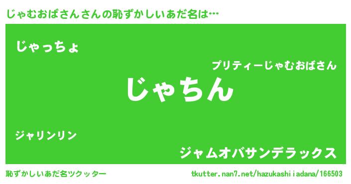 | 意味不明あだ名 | 『永久保存じゃむおばさん』 |