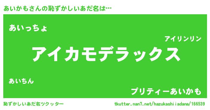| 意味不明あだ名 | 『自称あいかも』『あいかもフォーエバー』 |
