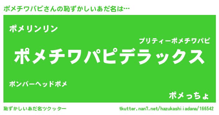 | ポケモン風あだ名 | 『ポメセウス』『ヒポメチワパピ』 |