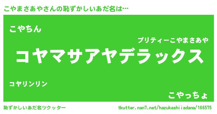 | ヘコむあだ名 | 『こやまさあや(爆)』『なまこ酢』 |