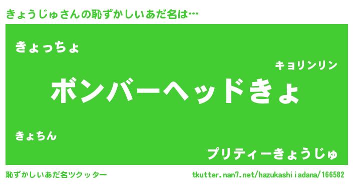 | ヒーロー風カッコイイあだ名 | 『正義の使者きょうじゅ』『暗黒騎士キョ』 |