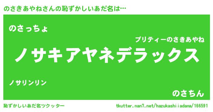 | 男性向けラノベタイトル風あだ名 | 『この素晴らしい世界にのさきあやねを!』 |