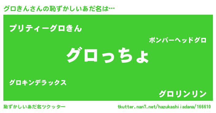 | ヒーロー風カッコイイあだ名 | 『仮面グロダー』『ウルトラグロきんマン』 |