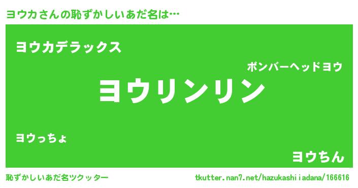 | ヘコむあだ名 | 『ヨウお』『ヨウカ(笑)』『なまこ酢』 |