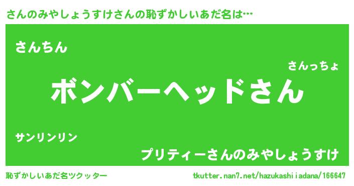 | ヘコむあだ名 | 『さんのみやしょうすけ(震え声)』 |