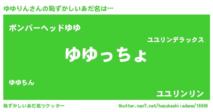 | ヒーロー風カッコイイあだ名 | 『ウルトラゆゆりんマン』『仮面ユユダー』 |