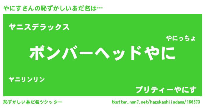 | ヒーロー風カッコイイあだ名 | 『友情の使者やにす』『究極戦士ヤニス』 |