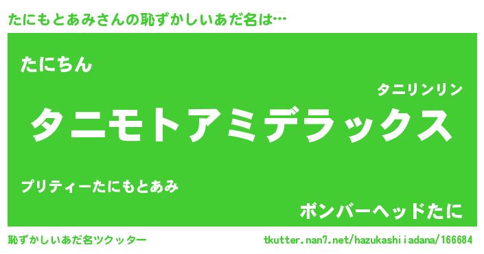 | 男性向けラノベタイトル風あだ名 | 『転生したらたにもとあみだった件』 |