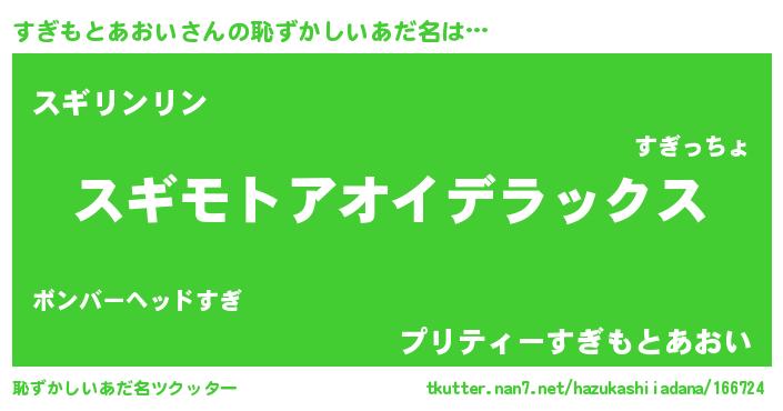 | ヘコむあだ名 | 『すぎっぺ』『すぎもー』『牛乳』 |
