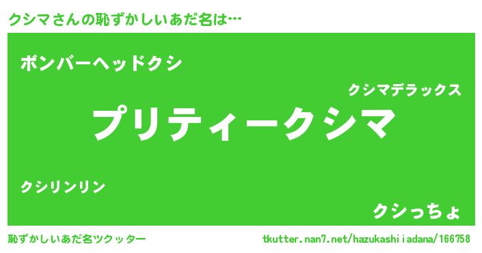 | ヒーロー風カッコイイあだ名 | 『スーパークシマ』『慈愛の使者クシマ』 |