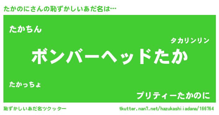 | ヒーロー風カッコイイあだ名 | 『天空の使者たかのに』『仮面タカダー』 |