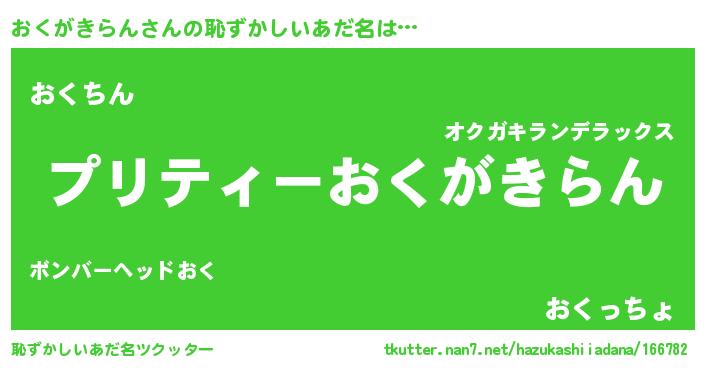 | 欧米人風あだ名 | 『ダレノガレおくがきらん』 |