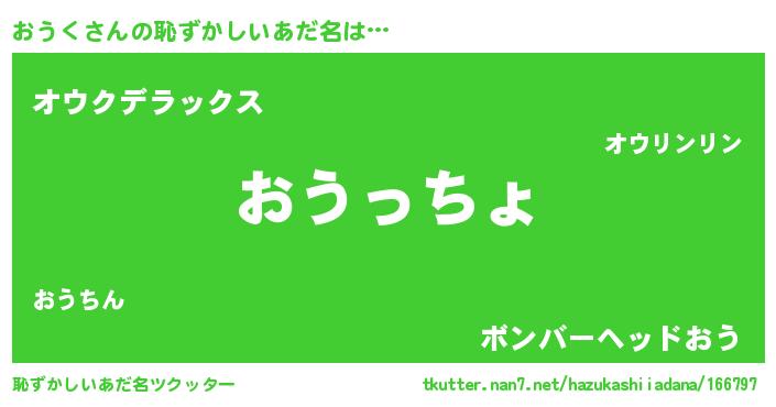 | 男性向けラノベタイトル風あだ名 | 『緋弾のオウク』『魔法科高校のおうく』 |