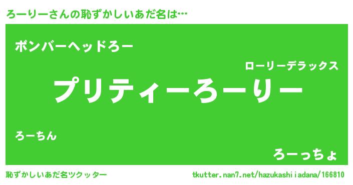 | 意味不明あだ名 | 『ペロリンろーりー』『自称ろーりー』 |