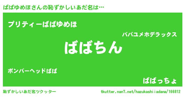 | ヘコむあだ名 | 『ばばゆめほ(笑)』『ばばにゅー』 |