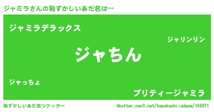 | 男性向けラノベタイトル風あだ名 | 『この素晴らしい世界にジャミラを!』 |