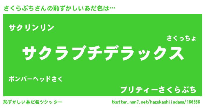 | 意味不明あだ名 | 『自称さくらぶち』『ペロリンさくらぶち』 |