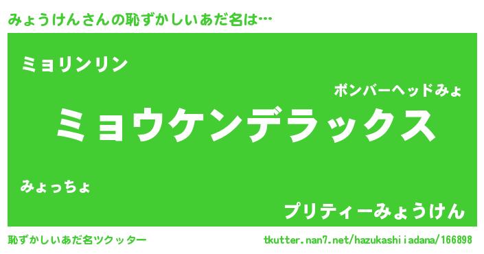 | 意味不明あだ名 | 『自称みょうけん』『ペロリンみょうけん』 |