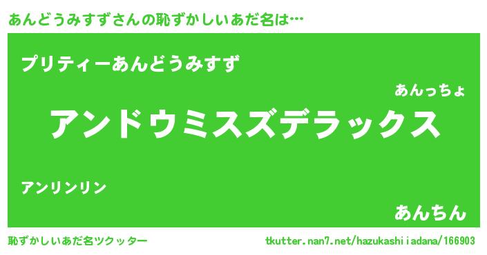 | 意味不明あだ名 | 『住所不定無職あんどうみすず(3歳)』 |